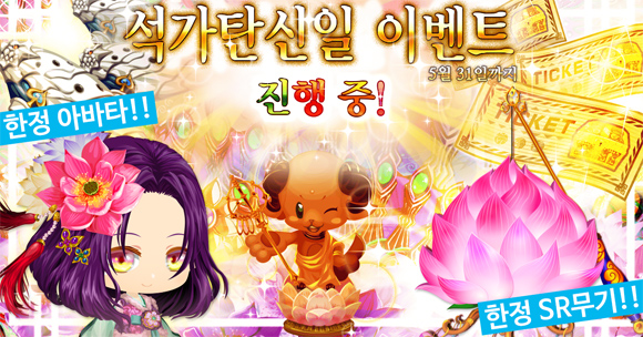 ... 이번 이벤트에서는 로그인 1일째에 몬스터 토벌을 위해 소환할 수 있는 '요괴의 오카리나'와 보물상자를 열 수 있는 '레어 보물상자 티켓'등을 증정한다. 또 5월 22일부터 5월 25일까지는 '석가탄신일'주간을 맞이해 '한정 고급 병기(연꽃 연등)'를 매일 4개씩, 연속 4일