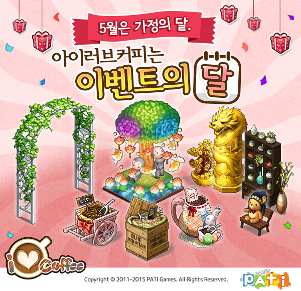 ... 보상으로는 ‘동자승 디스플레이’, ‘연등’과 ‘불상’ 등 석가탄신일을 축하하는 다양한 한정 아이템이 주어진다. 각종 할인 혜택도 제공된다. 원두통이 종류에 관계없이 30% 할인, 상점 직판원두가 70% 할인된 금액으로 판매되며 전통 다윈 테마와 골든 카페 테마 2종은 30%