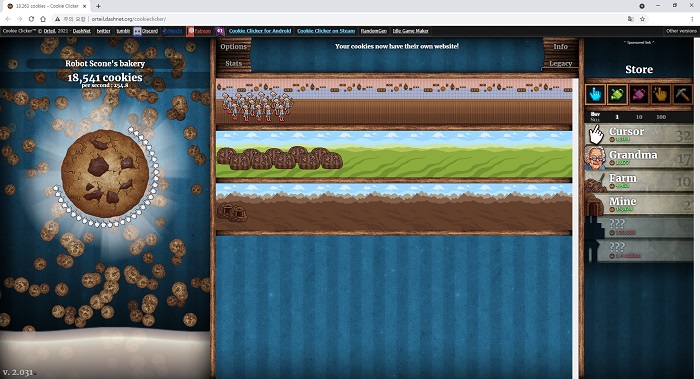 ... 게임 내에서 별다른 조작이 필요한 것은 아니지만, 꾸준히 늘어나는 쿠키와 전광판을 통해 표기되는 플레이어의 베이커리 소식을 소소하게 즐길 수 있다. 브라우저 기반의 쿠키 클리커 = 게임조선 촬영 특히, 쿠키 클리커는 브라우저에서 구동되던 웹게임 형식이기 때문에 컴