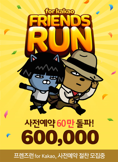 ... ‘프렌즈런’ 사전 예약은 5월 게임 출시 전까지 공식 사전 예약 페이지 및 공식 카페를 통해 누구나 참여할 수 있다. 신청자 전원에게는 유료 아이템 ‘라이언’ 캐릭터를 지급하며 추첨을 통해 총 500명에게 카카오프렌즈 캐릭터 인형을 선물한다. ‘프렌즈런’은 모바일 메신저 ‘카