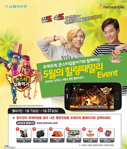 ... 넷마블 한지훈 본부장은 “가정의 달 5월을 맞아 가족과 함께 다양한 즐거움과 혜택을 누릴 수 있는 기회를 제공하고자 또래오래와 함께 이번 이벤트를 마련했다”며, “앞으로도 다양한 공동 마케팅을 통해 이용자들에게 새로운 즐거움과 만족 드릴 수 있도록 할 것”이라고 말했다. 한