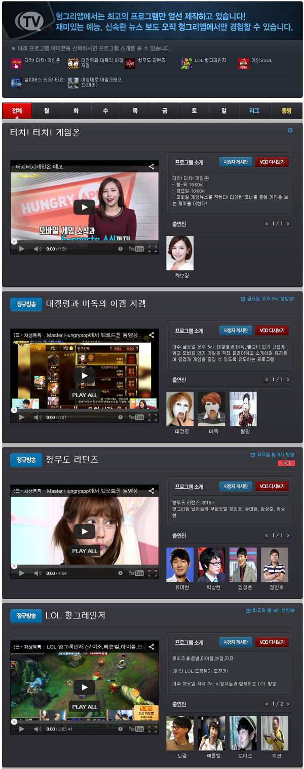 ...kr)는 자사의 인터넷 방송인 ‘헝그리앱TV’가 금년 상반기 중 IPTV에도 진출하기로 확정하였다고 금일(7일) 발표했다. 헝그리앱TV는 지난 2014년 개국해 1년여 만에 케이블 채널 진출에 이어 IPTV까지 진출을 확정 지었다. 헝그리앱TV 관계자는 “현재 송출