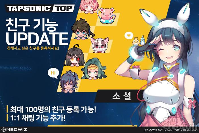 ... 추후 친구와 함께하는 다양한 콘텐츠가 업데이트될 예정이다. 신규 캐릭터 4성 레어급 ‘지니’, ‘조크 에리스갓’ 3성 노말급 ‘보니’, ‘아르키’ 등 4종도 추가된다. 이들은 각각 ‘플릭’노트, ‘탭’노트, ‘슬라이드’노트, ‘롱’노트 타입의 캐릭터다