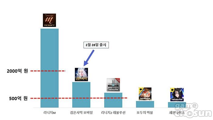 ...모바일마켓 인텔리전스 플랫폼 모바일인덱스에서 조사한 구글플레이 데이터를 살펴보면 최고 매출을 기록한 TOP5 게임은 리니지M-검은사막모바일-리니지2레볼루션-모두의마블-세븐나이츠 순으로 나타났다. '리니지M'은 2018년 상반기 부동의 매출 1위를 기록했다. 상반기 동안 매출은 4