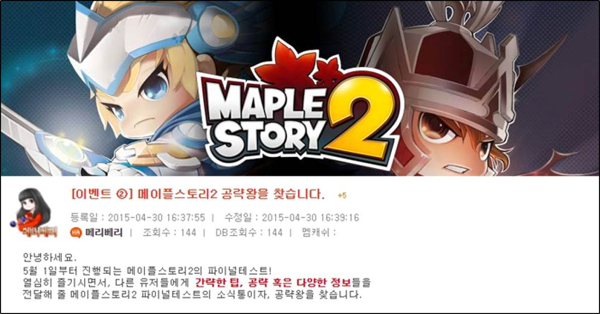 ... 본 이벤트는 5월 10일까지 진행되며 자세한 내용은 ‘메이플스토리2 헝그리앱’ 커뮤니티 이벤트 공지를 통해 확인할 수 있다. 자료 출처 :헝그리앱(http://www. hungryapp