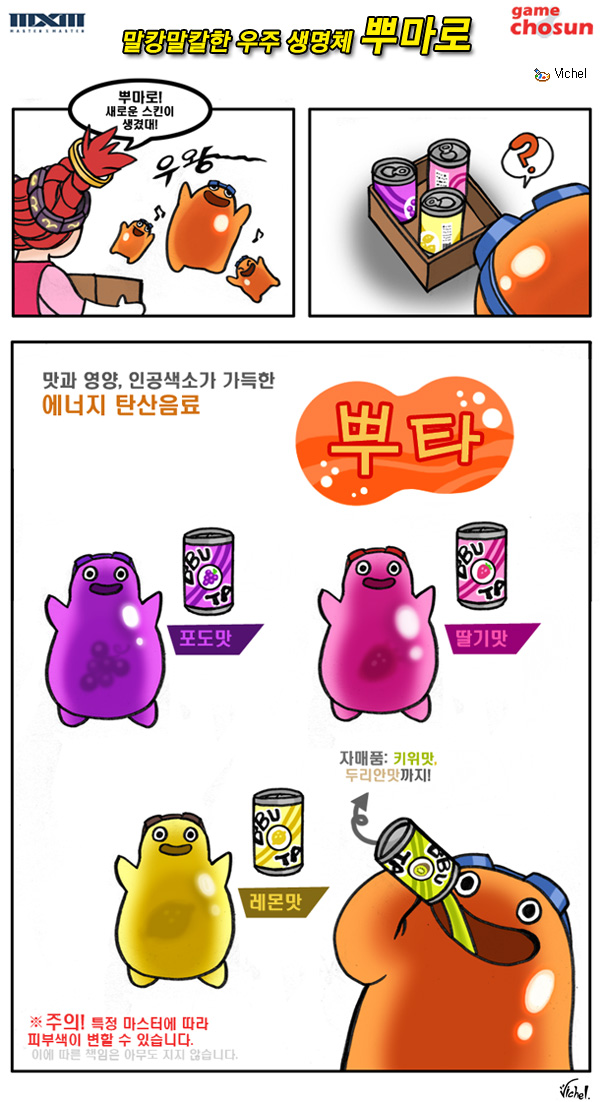 ... 게임 내 설정을 바탕으로 뿌마로와 아라미의 관계 그리고 뿌마로캐릭터 설정과스킨 기능을 바탕으로 뿌마로의 새로운 스킨이 음료수 형태로 나온다는 상상의 콘셉트를 3컷 만화로 담아냈다. [전영진 기자 cadan@chosun. com] [gamechosun