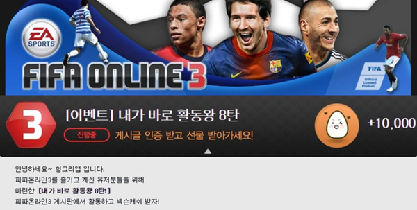 ...'로 피파온라인3 유저라면 누구나 관심을 가지고 있는 'UEFA 챔피언스 리그' 4강 1차전 경기에서 승리할 팀과 예상 스코어를 5월5일까지 작성한 참가자 중 추첨을 통해 헝그리앱에서 현금처럼 사용할 수 있는 밥알 포인트를 지급한다. 피파온라인3 더블 이벤트에 대한 자세