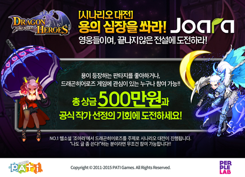 ...gl/K7Q0yy)에서 접수하면 된다. 당선작은 6월 26일 ‘조아라’ 공식 홈페이지에서 발표되며 당선자에게는 최고 300만원의 상금과 인게임 아이템이 지급된다. 또한 수상작 중 뛰어난 컨텐츠를 작성한 참가자는 ‘드래곤히어로즈’ 공식작가로 선정돼 2차 저작물 활동을 추가로 진