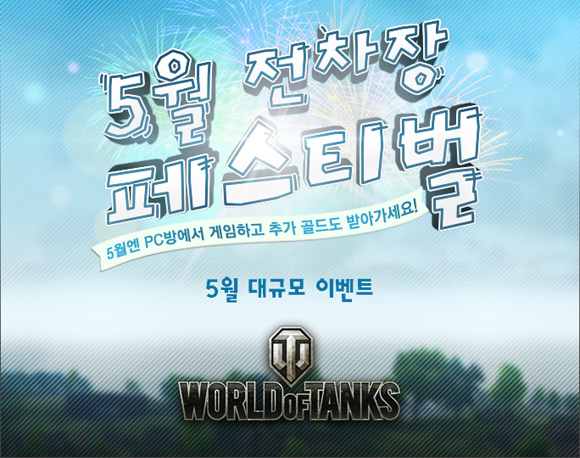 ... 아울러 일일 임무 이벤트를 통해 대형 소모품 세트 10개도 지급된다. 이와 함께 매주 주말마다 ‘어린이날’, ‘스승의 날’ 등 5월 공휴일에 맞춘 이벤트가 진행될 예정이다. ‘월드오브탱크’ 프리미엄 PC방에서 게임을 즐기는 유저들을 위한 이벤트도 진행된다
