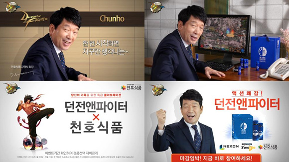 ... 특히 이번 제휴 이벤트를 기념해 ‘산수유, 남자한테 참 좋은데~ 표현할 방법이 없네’ 등 천호식품 광고 시리즈 모델로 등장해 화제를 모은 김영식 대표가 직접 패러디한 던전앤파이터 코믹 홍보영상을 공개했다. 이와 함께 네오플은 ‘안트베르 협곡’, ‘해상열차’, ‘시간의 문