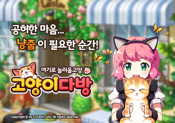 ... 특히 좋아하는 고양이 입양은 물론 쓰다듬기, 간식 만들어 주기, 놀아주기 등을 통해 고양이와 교감하는 재미를 더했다. 이스트소프트 게임사업본부 장지혁 본부장은 “’고양이 다방’은 RPG 장르 일색인 모바일 게임 시장에서 색다른 재미를 느낄 수 있는 신작 SNG”이라며, “열