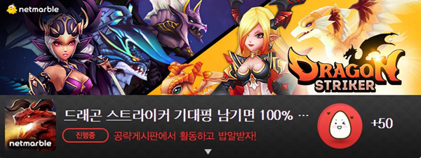 ... 이번 미션은 '드래곤 스트라이커 기대평 남기면 100% 밥알 지급'으로 '드래곤 스트라이커 헝그리앱' 커뮤니티에 기대평을 작성하면 참가자 모두에게 헝그리앱 내에서 현금처럼 사용할 수 있는 밥알 포인트를 지급한다. 본 이벤트는 드래곤 스트라이커 출시일까지 진행되며 자세한 내용