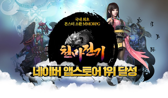 ... 천마전기는 티스토어 오픈 이후 4일만에 무료게임 1위를 달성한 바 있다. 14일부터 진행됐던 사전등록에 참여한 유저들에게 고급소환권 헌원향 3장, 200원보 등 5만원 상당의 아이템을 지급했으며 23일 출시후에도 첫 충전 2배 이벤트, 레벨 업 이벤트, 7일간 원보 무료증