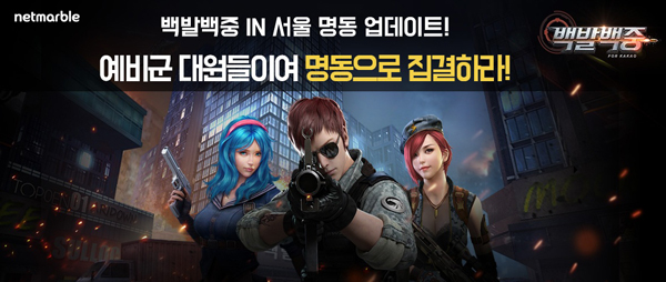 ... 넷마블은 이번 업데이트와 더불어 대한민국 예비군을 응원하는 취지에서 ‘예비군 집결 명령에 응답하라’ 이벤트를 오는 26일까지 실시한다. 군복을 입고 게임 닉네임을 확인할 수 있는 사진을 찍어 공식카페에 올리면 참가와 완료되며 참가자 전원에게 500개 다이아(유료재화)와 참여