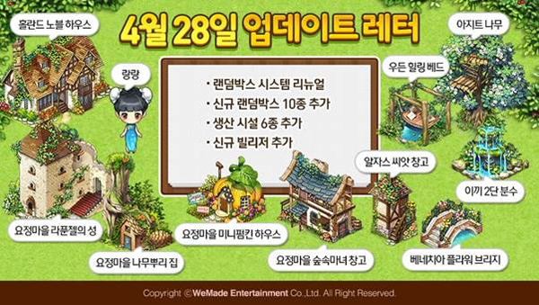 ... 특히, 조합상점의 새로운 주민 ‘랑랑’이 포함된 ‘시간여행 랜덤박스’를 비롯해, 신규 랜덤박스 총 10종이 추가로 공개됐다. 멀티타운 챌린지 퀘스트 전용 ‘사탕수수, 꿀, 몽블랑 케이크 챌린지 트로피’ 3종과 5월 가정의 달을 맞아 ‘5월의 푸른 날에’ 조경물도 선보였다.