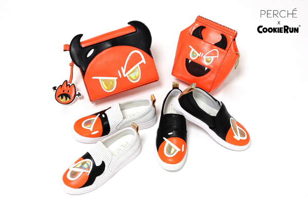 ... 페르쉐는 SPA 슈즈&백 브랜드로 디자이너, 배우, 팝아티스트, 코스메틱 등 다양한 브랜드와 콜라보레이션을 진행해왔다. 이번에 선보이는 쿠키런X페르쉐 라인은 2015년도 패션계의 키워드인 키치를 콘셉트로 쿠키런 캐릭터 중 악마맛 쿠키 특유의 얼굴 표정을입체적인 패치워크