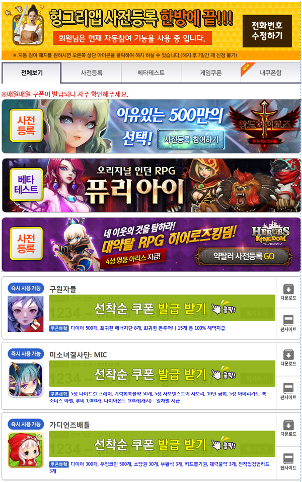 ... 헝그리앱은 국내 유명 포털 사이트와 연동해 많은 유저들에게 게임 정보를 제공하며, 다음카카오와 게임 콘텐츠 제휴, 헝그리앱TV 케이블 채널 방송국 개국, 영상 보도국 신설 등 다양한 분야로 진출하고 있다. 이외에도 2년 동안 개발해온 서비스들을 하나씩 선보이며 대대적인 마