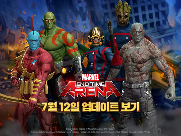 ...또한, 그루트와 스타로드의 ‘어나힐레이션’ 버전의 모습을 프리미엄 스킨으로 내놓기도 했다. 여기에 더해 드랙스의 레귤러 스킨도 추가해 유저들의 선택의 폭을 넓혔다. 스마일게이트는 블랙 위도우 에이지오브울트론(레귤러), 아이언맨 마크3(레귤러)와 조 픽싯(프리미엄) 등 영웅들의 스