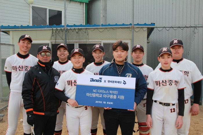 ...마산중학교 배형렬 감독은 "선수들이 꼭 필요한 물품을 지원해준 박석민 선수에게 감사의 인사를 전한다. 박 선수를 본받아 우리 선수들도 따뜻한 마음을 가진 사람으로 성장할 수 있도록 지도하겠다“고 말했다. 박석민 선수는 앞서 2016년 형편이 어려운 모교 후배 야구선수들에게 2억여