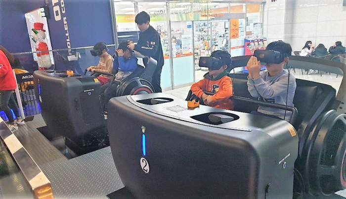 ...특히 다양한 VR 콘텐츠를 쉽고 직관적으로 즐길 수 있는 ‘몬스터큐브’, ‘롤러코스터VR’, ‘레이싱VR’ 등이 아이들에게 인기를 얻었으며, VR을 통해 처음 경험해 본 가상 현실의 세계에 대해 신기해하며 호기심을 나타냈다. GPM 박성준 대표는 “GPM은 대형 VR 테마파크인 ‘