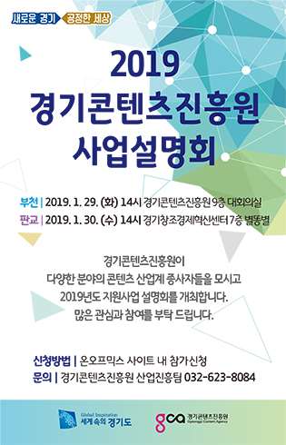 ...‘콘텐츠산업 혁신 성장 고도화’ 부문은 게임, 영화, 음악, 출판, MCN, VR/AR 등 콘텐츠를 통한 창업과 일자리 창출 및 글로벌 진출 확대를 목표로 하는 사업 내용을 담고 있다. ‘콘텐츠 지역 클러스터 생태계 활성화’ 부문에서는 경기 서부, 동부, 북부, 남부를 아우르는