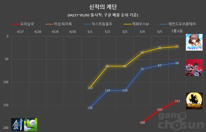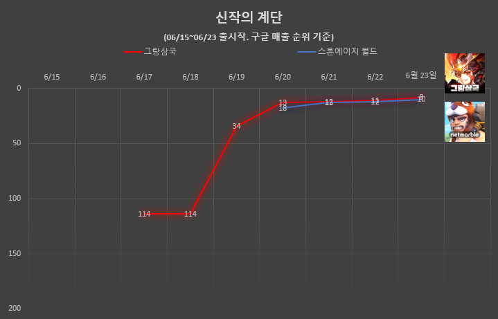 ... 여기에 스토어 각종 집계 순위 어느 곳까지 올라서느냐에 따라 흥행 성적이 크게 좌우되기도 한다. 안 아픈 손가락이 없다는 게임사가 애달픈 심정으로 보내게 되는 오픈 첫 주. '신작의 계단' 코너를 통해 지난 한주 간 출시된 주요 신작들의 첫 주말 성적을 알