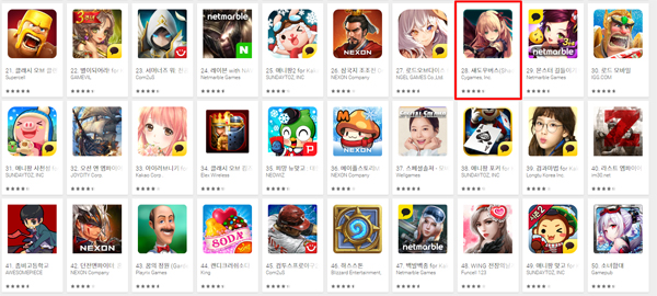 ... 이날 순위에선 경쟁작인 하스스톤(46위)도 제쳤다. 섀도우버스는 유명 작품 '바하무트:배틀오브레전드'의 IP(지식재산권)를 활용한 작품으로, 총 600여 장의 카드로 덱을 구성해 글로벌 이용자들과 대전을 펼치는 게임이다. 과거 출시 6개월만에 글로벌 다운로드 600만건을 달성했으