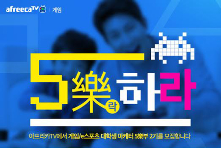 ...게임·e스포츠 대학생 마케터 5樂부 지원은 아프리카TV 홈페이지에서 지원서를 다운받아 작성 후, 이메일(marketer@afreecatv. com)로 접수하면 된다. 모집 기간은 13일부터 24일까지이며 게임·e스포츠 마케팅에 관심 있고, 월 2회 수도권 오프라인 모임 참가가 가능