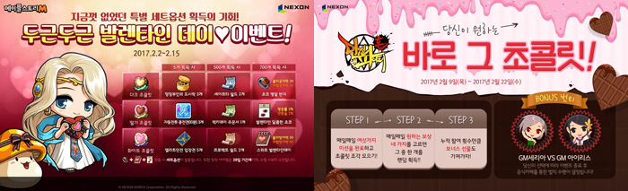 ... 더 적은 초콜릿을 얻은 GM은 이벤트 종료 후 벌칙을 수행하게 된다. ‘HIT’에서는 밸런타인데이를 맞아 15일까지 게임 접속 시 ‘경험치 증가권’, ‘즉시 완료권’, ‘골드 증가권’을 지급하고, 공식 페이스북 내 밸런타인데이 관련 게시글의 좋아요 수치가 100개 이상을 달성하면