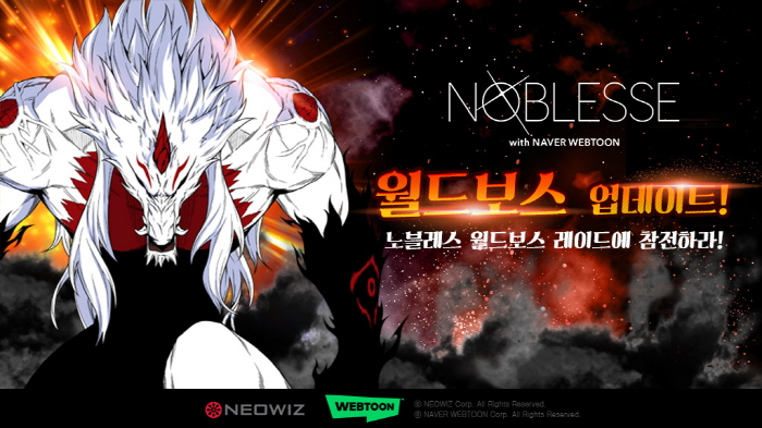 ...월드보스는 처치할 때 마다 더욱 강력한 보스가 등장하고, 공략 후에는 월드 코인과 재화들을 보상으로 획득할 수 있다. 신규 캐릭터 '하이든'도 새롭게 추가됐다. '하이든'은 '노블레스' 원작 웹툰에서 유니온의 수장인 절대자 '1장로'의 대역을 맡고 있던 강력한 인물이다
