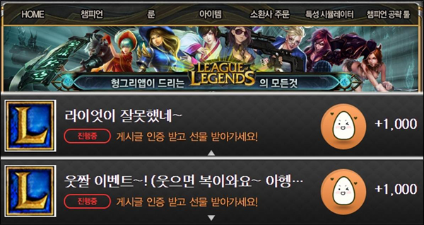 ... 이번 더블 이벤트는 금일(16일)만 진행하며, 자세한 내용은 '헝그리앱 미션' 또는 '리그오브레전드 헝그리앱' 커뮤니티 이벤트 공지를 통해서 확인이 가능하다. 자료 출처 :헝그리앱(http://www. hungryapp