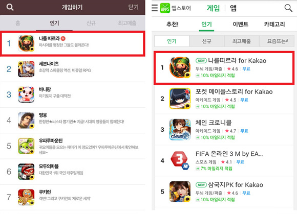 ... 배우 김대명과 함께한 사전등록 이벤트 및 마케팅으로 출시 전부터 주목을 받았으며, 국내출시 첫날에는 애플 앱스토어 1위를 기록한 바 있다. 현재 ‘나를 따르라’는 카카오 게임하기 iOS 1위, 안드로이드 2위, 네이버 앱스토어 1위, 애플 앱스토어 2위, 구글플레이 11