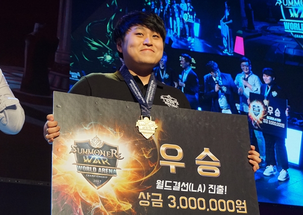 ...현장에는 1200여명 관객이 방문해 열띤 응원을 보냈다. 이날 8강 토너먼트를 거쳐 월드 파이널 진출자 2명이 가려졌다. 우승자 스킷-과 준우승자 지돌-에게 상금과 메달, 한정판 ‘서머너즈워’ 피규어가 전달됐으며 오는 11월 25일 미국 LA에서 열리는 SWC 월드 파이널 참가