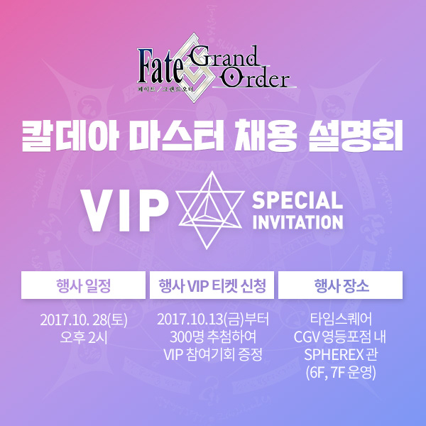 ... '극장판 페이트/스테이나이트 [헤븐즈필]’은 페이트 시리즈의 최신 극장판으로 일본은 오는 14일 개봉하며 국내에서는 정식 상영 전 이 행사에서 특별 상영회를 진행한다. 참가를 희망하는 이는 오는 20일까지 이벤트 페이지에서 신청가능하다. 당첨자는 10월 23일 발표 예정이다