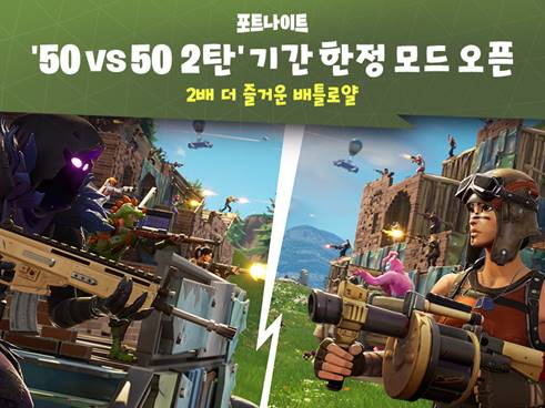 ... 이는 지난해 12월 선보인 50대 50의 업그레이드 버전으로 50명씩 두 팀을 이뤄 상대 팀의 모든 플레이어를 제압하는 대규모 팀배틀 모드로 기존 모드와 다르게 각 팀은 서로 다른 배틀버스를 타고 반대 방향에서 전장으로 이동한다. 또한 게임 시작 시 폭풍 원의 최종