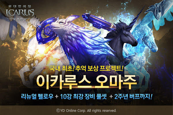 ... 지난 2014년부터 올해를 기준으로 캐릭터를 생성한 연도에 따라 리뉴얼한 영원의 페가수스와 영원의 나이트메어, 영원의 하미온 펠로우를 지급하며 이 외에도 엘룬 및 +10강 엘로라의 장비 세트 등의 풍성한 보상을 제공할 예정이다. 더불어 지난 6일부터 오는 27일까지 2주년