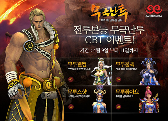 ... '무극난투'의 CBT 기념 이벤트도 화끈하게 즐길 수 있도록 시원하게 지원하여 CBT 기간 동안 매일 접속만 해도 하루 최대 4만원 상당 캐시(2,000금자)를 받을 수 있으며, CBT 3일 간 총 12만원 상당(6,000금자)의 캐시를 지원한다. 또, CBT 기간 동안 신규
