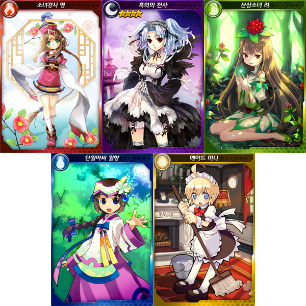 ... 엔트리브소프트는 지난 2월 비공개 테스트에서 공개하지 않았던 신규 캐릭터 5종의 일러스트를 공개한다. 이번에 공개된 캐릭터는 동양과 서양풍의 여성 캐릭터들로 어둠, 불, 물, 빛, 나무의 속성을 각각 갖고 있다. 먼저, 서양풍 캐릭터 2종 가운데 ‘흑의의 천사’는 지난 테