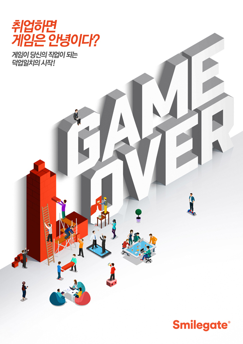... 스마일게이트는 올해 채용 메인 테마로 ‘취업하면 게임은 안녕이다?’로 정했다. 취업 후 바쁜 업무로 취미인 게임과 작별해야 한다(GAME OVER)는 것에 착안, 스마일게이트 입사는 ‘GAME OVER’가 아닌 취미를 본업으로 이어가며 게임 산업에 대한 애정과 열정을 발산