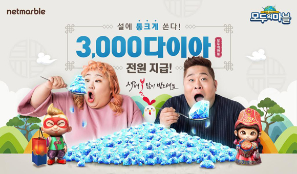 ... 오는 2월 10일까지 접속만해도 1천 다이아가 바로 지급되며 게임 내 진행되는 다양한 이벤트 완료 시 2천 다이아를 추가 획득 할 수 있다. 또 누구나 쉽게 플레이 할 수 있고 특별한 보상까지 증정되는 ‘운수대통 한국맵’, ‘천냥뽑기맵’, ‘골드&다이아맵’이 깜짝 등장하는
