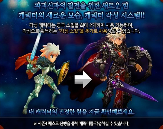 ... 시즌4 업데이트를 통해 게임은 신규 지역과 캐릭터, 최고레벨 확장 등 게임 전반에 걸친 콘텐츠의 변화가 있었으며 그중 '각성 시스템'은 기존 캐릭터를 더 강하게 만들어 궁극기를 2개 사용할 수 있고 인게임 일러스트도 화려하게 변해 눈길을 끌었다. 또 신규 유저를 위한 임무