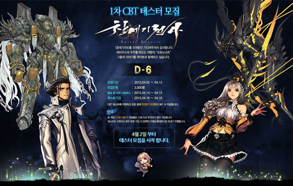 ... '창세기전4'의 1차 CBT는 4월 16일부터 4월 18일까지 3일간 진행되며, 금일부터 테스터 신청이 가능하다. 총 3,000명의 테스터를 모집하며, 당첨자 발표 및 클라이언트 사전 다운로드는 4월 14일부터 4월 15일까지 진행된다. 1차 CBT에서는 유저 랭크(레벨)