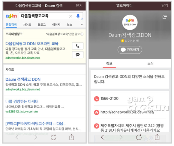 ... 이용자 또한 모바일에서 더욱 편리하게 사업자와 정보를 주고 받을 수 있다. 이용자가 다음 모바일 앱 또는 웹의 검색 결과에 노출된 사업자의 옐로아이디 버튼을 누르면, 사업자와 1:1 카카오톡 채팅을 통해 상담을 할 수 있다. 또한 이용자는 상담 후에도 사업자의 옐로아이디