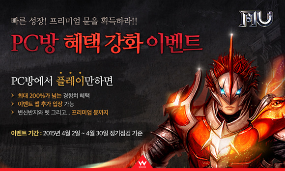 ... 특히 PC방 회원끼리 파티를 맺으면 파티원 1인 당 20%씩, 5인 파티 구성시 최대 100%의 경험치가 적용되어 한층 빠른 캐릭터 육성의 재미를 느낄 수 있게 되었다. 또 사냥시 아이템 드랍 확률이 10% 상승되며 분노/마력/체력/마나/방어 등에 대한 스크롤 5종 효과가