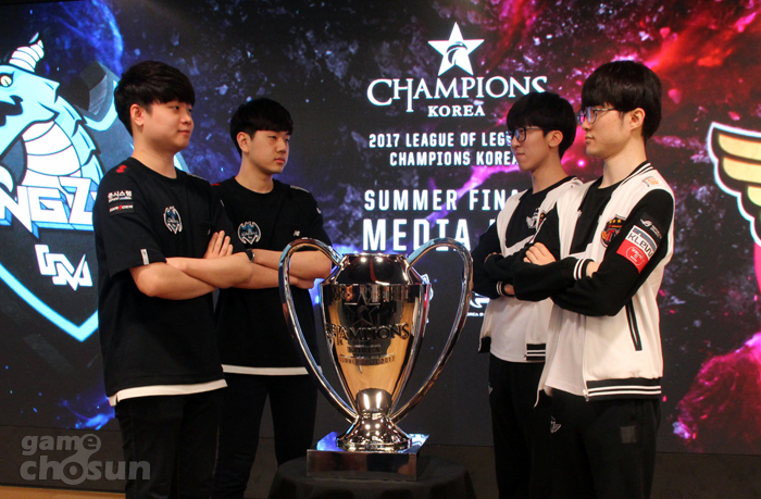 ... 각 팀 감독과 선수들은 불꽃튀는 설전을 펼치며 오는 26일 진행될 결승전을 기대케 했다. 다음은 현장 사진이다. ▲ SKT T1 정글러 한왕호 "롱주팀이네" ▲ 롱주게이밍 탑 '칸' 김동하 "SKT 탑솔러에게 본때를 보여주겠다" ▲