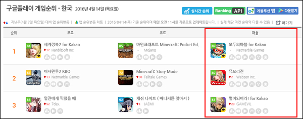 ...gevolution. co. kr/) 이에 <게임조선>에서는 국내 모바일게임 시장과 해외 주요 나라의 모바일게임 순위를 매일 알아보는 시간을 가져봤다