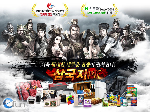 ... 오는 27일(금)부터 진행되는 이 이벤트는 ‘삼국지PK’의 기존 유저들은 게임에 접속만 해도 게임 아이템을 얻을 수 있고, 다양한 현물경품을 획득할 수 있다. ‘삼국지PK'는 제한 없이 진행되는 실시간 PvP와 패왕의 자리에 도전하는 지존격투장, 다른 국가의 국왕을 노예로