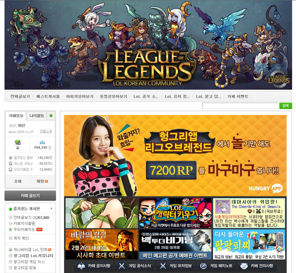 ... 신규 스킨 출시를 기념하여 리그오브레전드 대표 커뮤니티 ‘롤 헝그리앱’에서는 ‘활동왕 이벤트’를 진행 중이다. 이번 활동왕 선정은 게시글 30개, 댓글 50개 이상을 작성한 커뮤니티 유저만 해당되며, ‘롤 헝그리앱’ 커뮤니티에 작성한 게시글 순위를 집계하여 최고