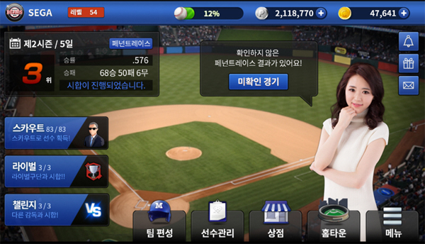 ... 특히, 구단 정보란에는 구단 경력과 컬렉션, 타자스타트맴버 및 투수스타트맴버 등 다양한 설정이 가능한 메뉴들까지 확인이 가능하여 ‘프로야구매니저M’에 대한 궁금증을 상당 부분 해소시켜줄 것으로 기대된다. 세가퍼블리싱코리아 김현주 본부장은 "온 국민의 스포츠 야구를 소재로 한