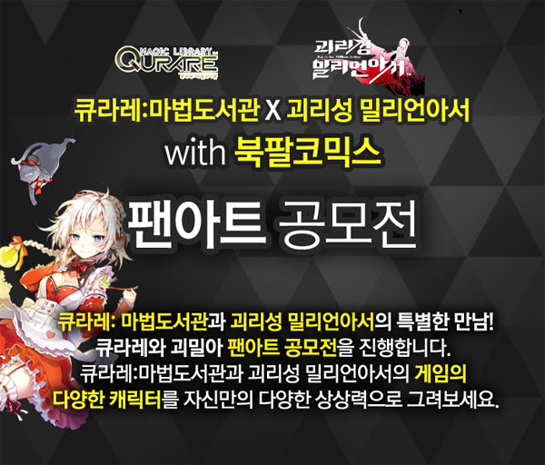... 다만 타 공모전에 응모했거나 상업용으로 사용된 작품은 참가할 수 없다. 수상작은 오는 5월 13일 '큐라레'와 '괴밀아' 공식 커뮤니티와 북팔 코믹스 홈페이지에 공지된다. 심사위원 점수 70%와 게시판 내 공모작 인기투표 30%를 반영해 선정될 예정이다